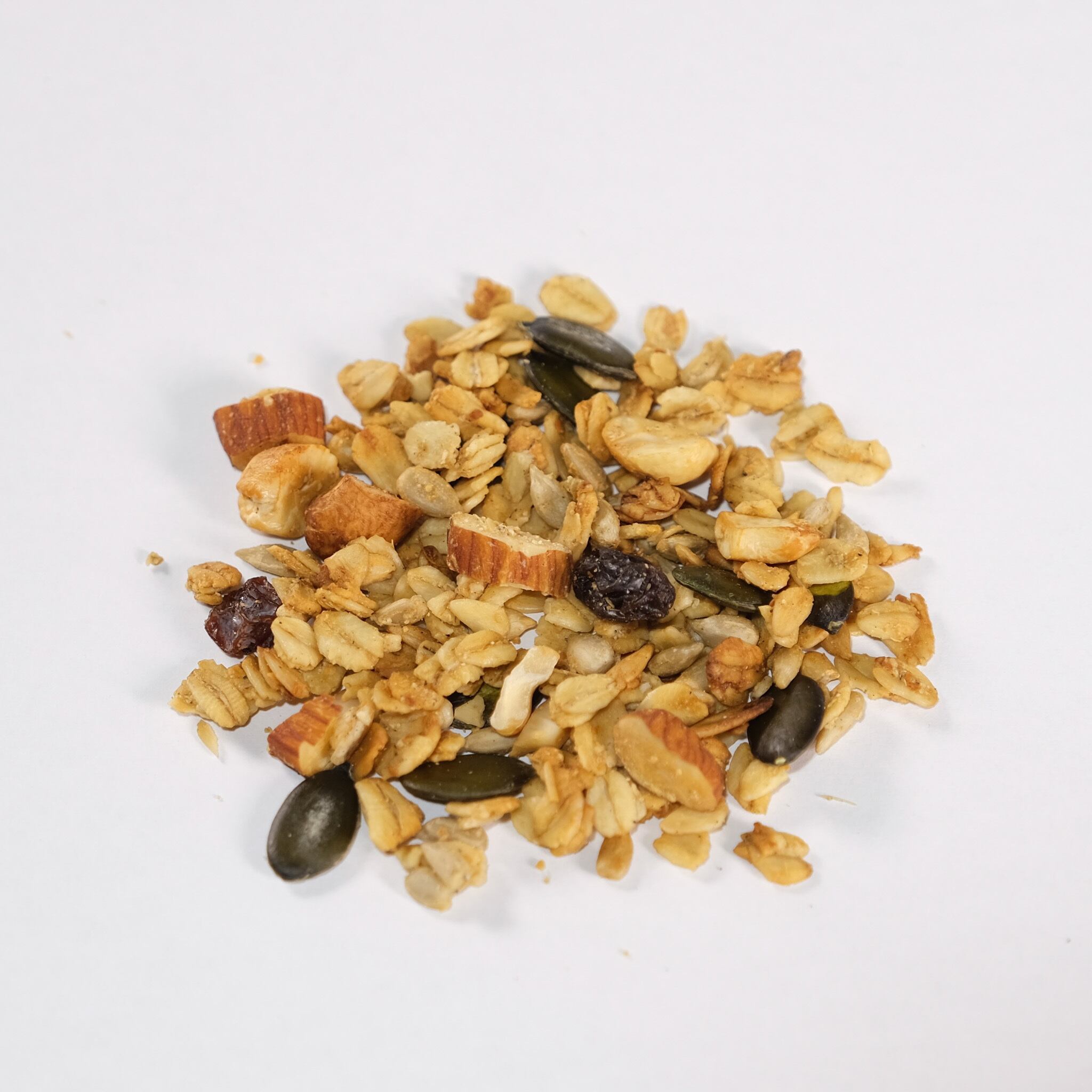 有機オートミール、有機ひまわりの種、有機オリーブオイル、塩麴、有機アーモンド、有機カシュ―ナッツ、有機くるみ、有機レーズン、有機かぼちゃの種、甘酒、有機メープルシロップ、有機カルダモン