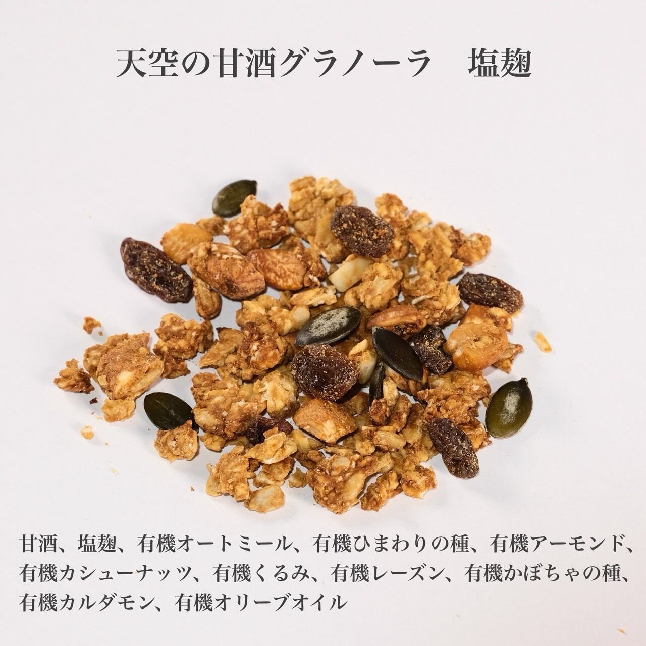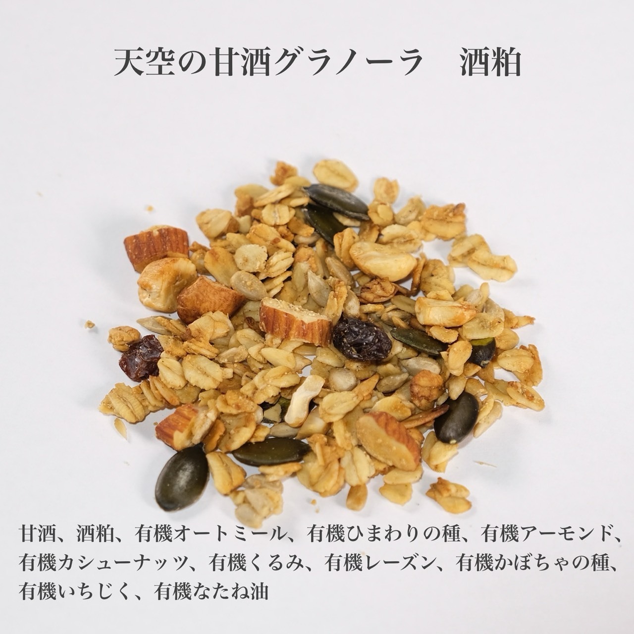 オートミールやナッツは厳選したオーガニック⾷材を使⽤。さらに、岐⾩県東美濃の麹屋さんが作る麹や、古くから続く酒蔵の酒粕を⽤いた、